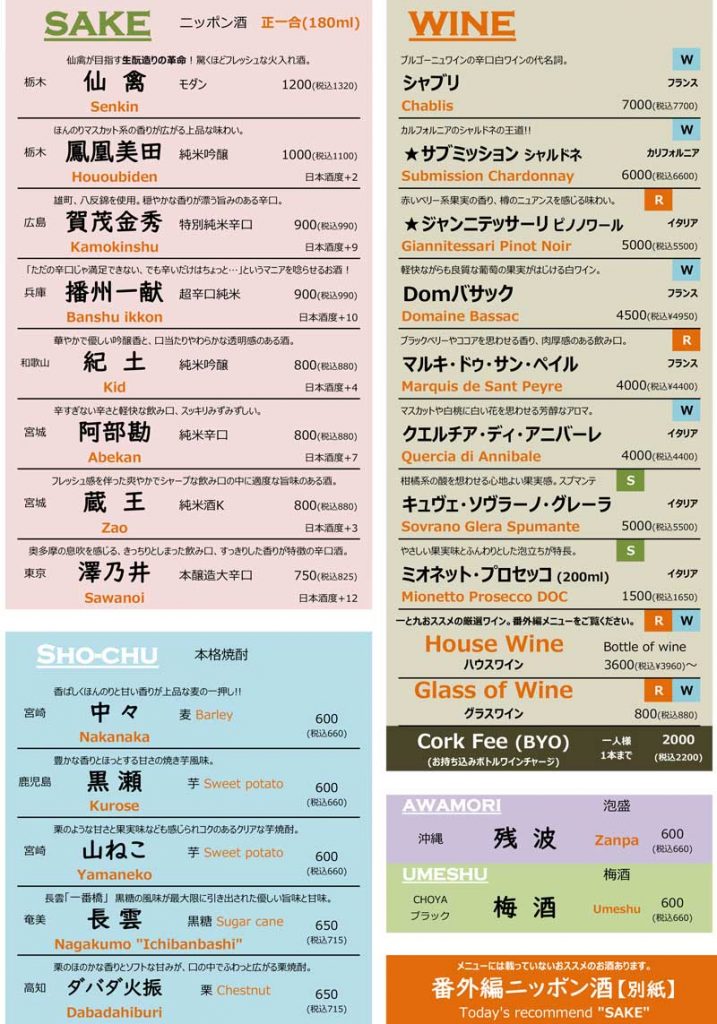 ドリンクメニュー(DRINK)